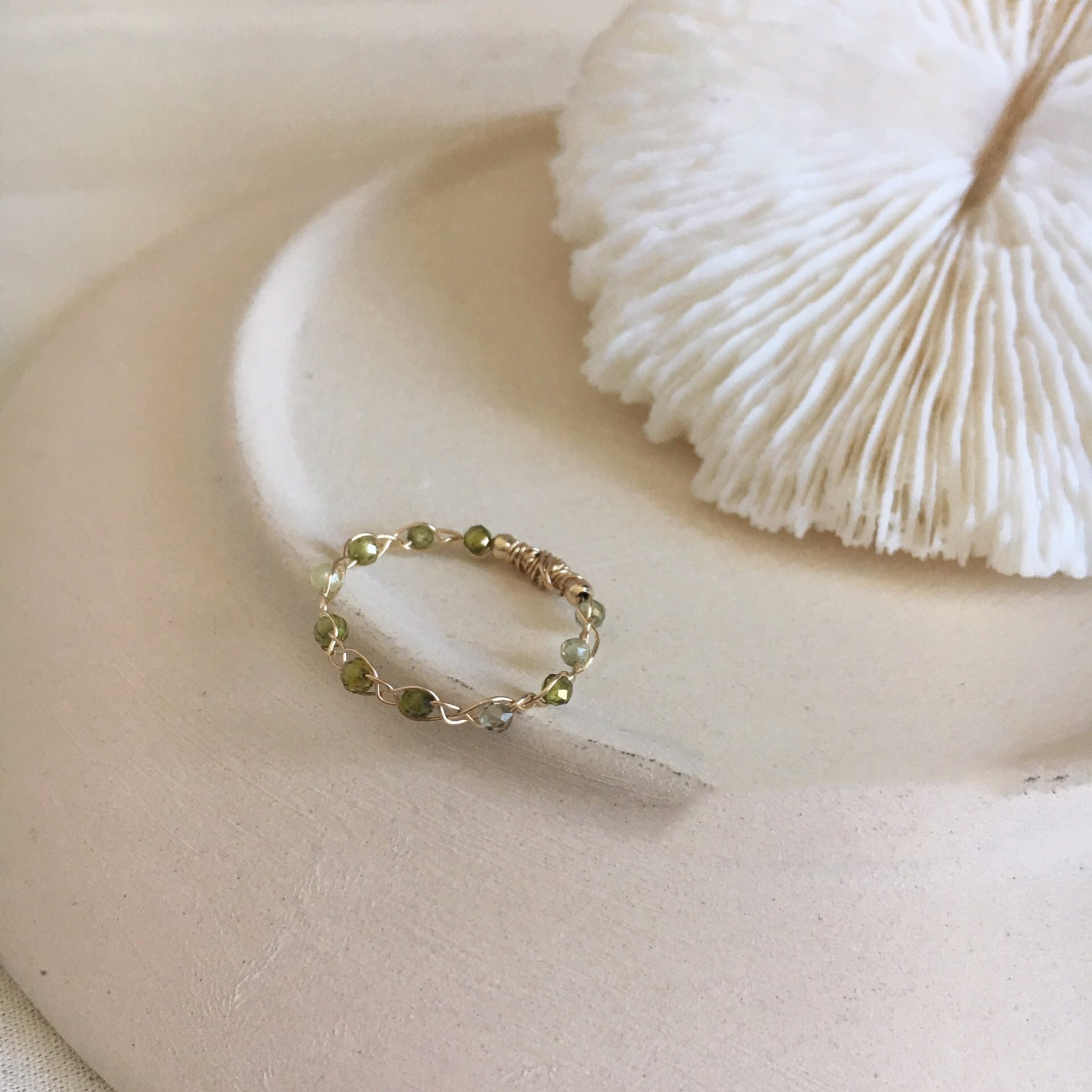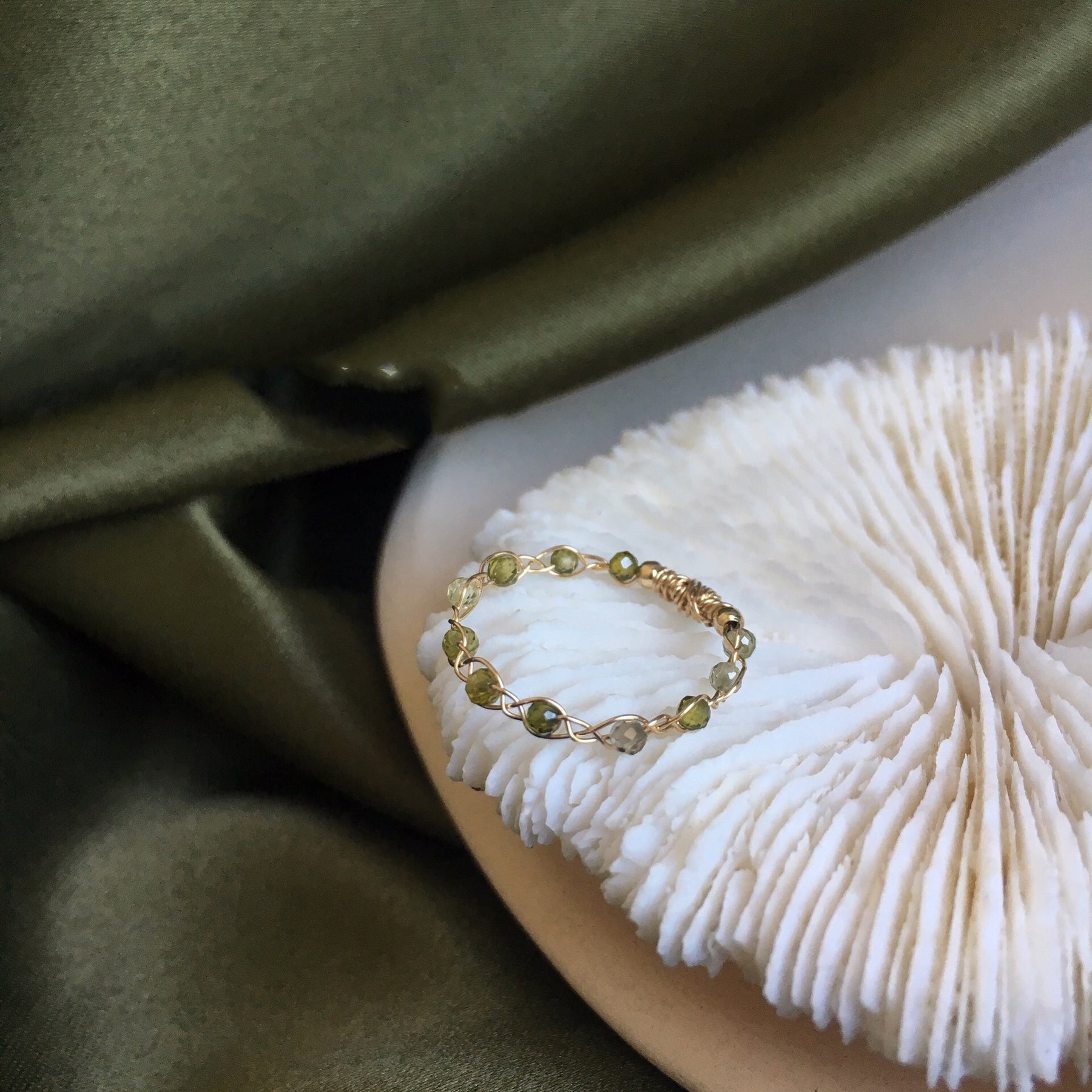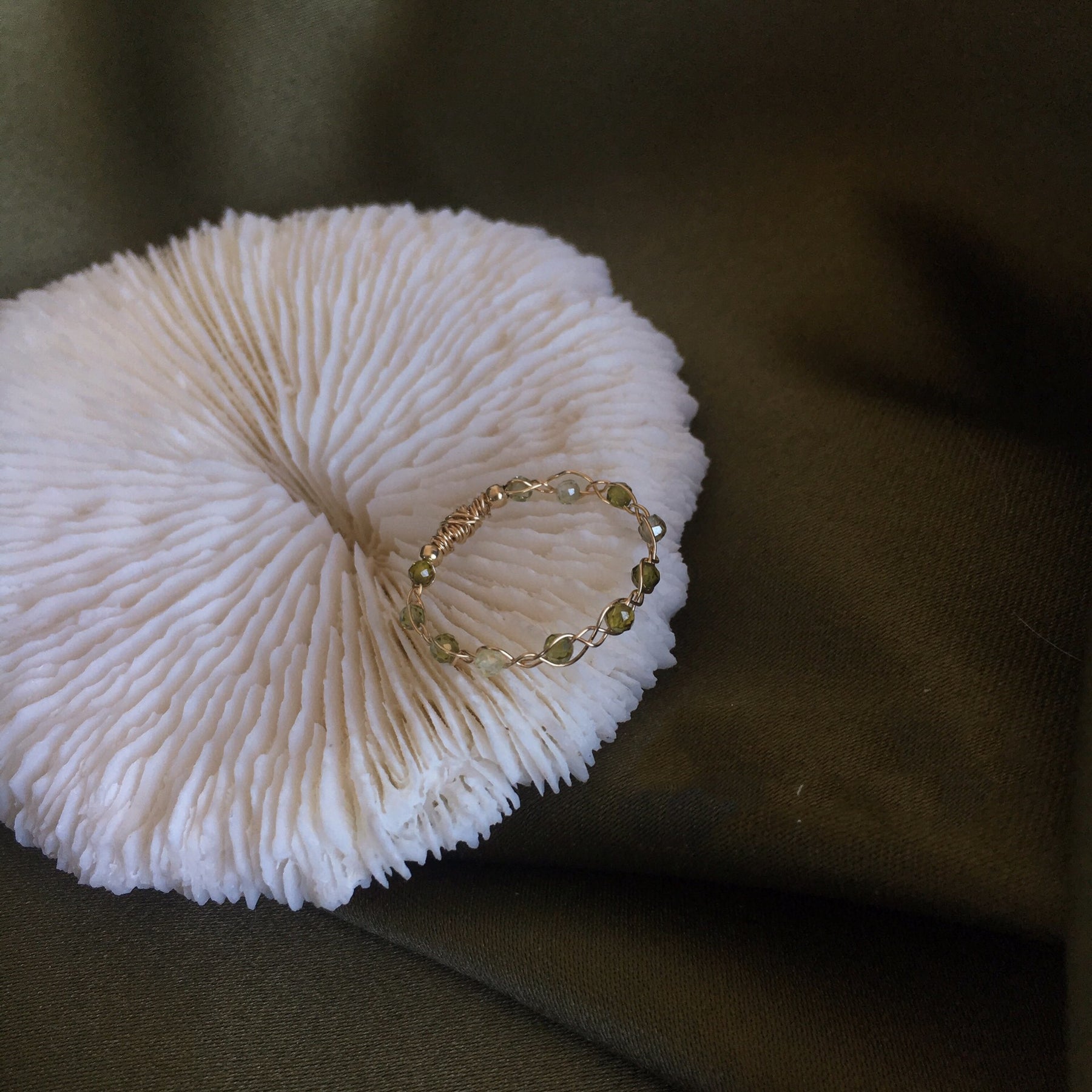 small olivine gemstones on a delicate & loose-fitting ring chain ★