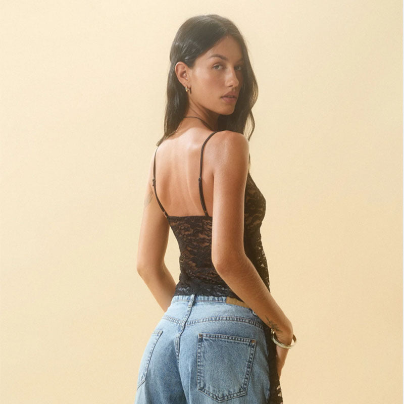 total-babe lace tank top with asymmetrical trim, fit for dramatic and zigzaggy queens alike ★